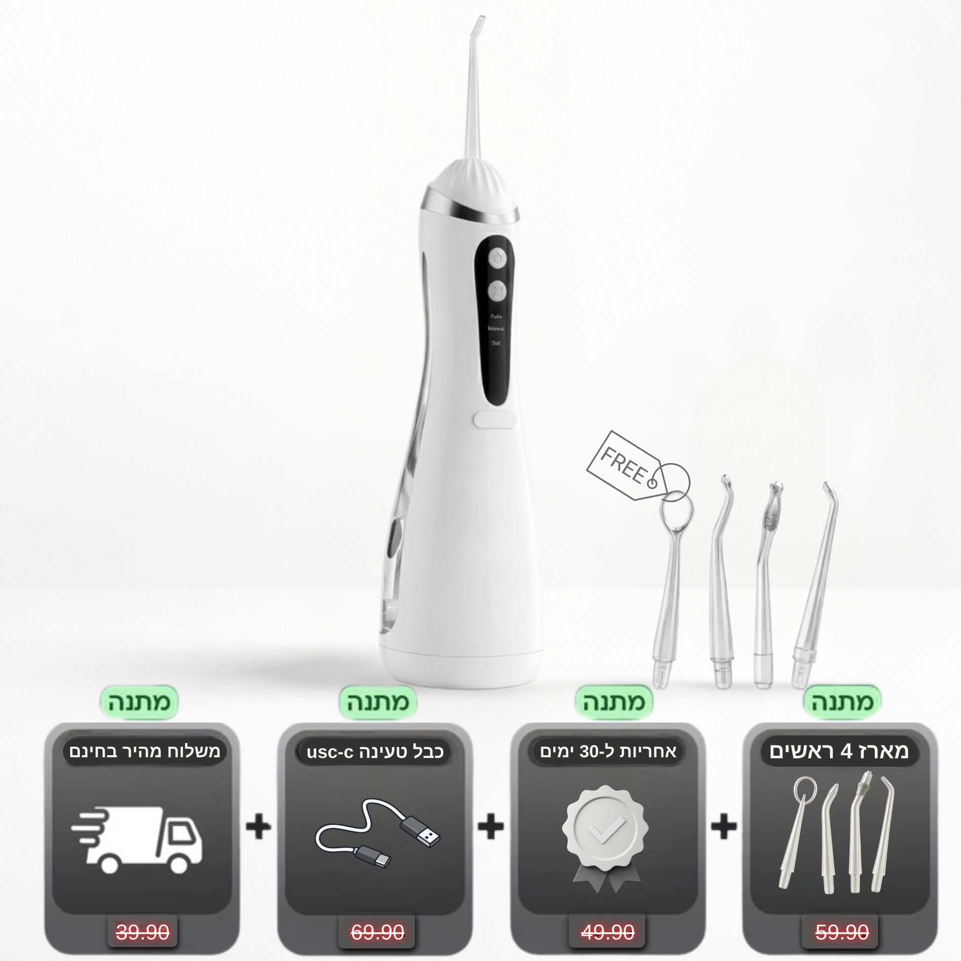 בנוסף, המכשיר איכותי ועמיד יותר, מגיע עם פיות מתחלפות ושירות לקוחות בעברית שנותן שקט וביטחון.